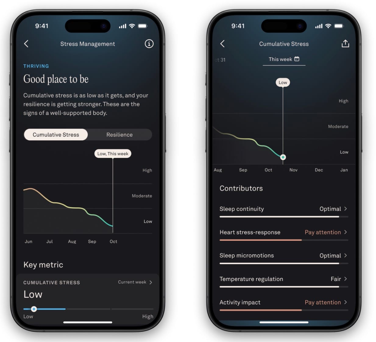 Jason Russell, Oura's VP of Consumer Software Product, emphasized that the system measures stress through bodily responses rather than simply logging stressful periods. The feature identifies physiological signatures that indicate chronic stress is affecting the body's regulatory systems.